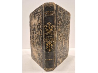 Legatura editoriale in cartoncino rosa con titolo Almanacco 1828 all'interno di cornice tipografica al piatto anteriore (dicitura L'arca di Antenore, manoscritta al bordo superiore) e fregio entro la stessa cornice a quello posteriore. Bella antiporta figurata raffigurante la Fama in volo con la...