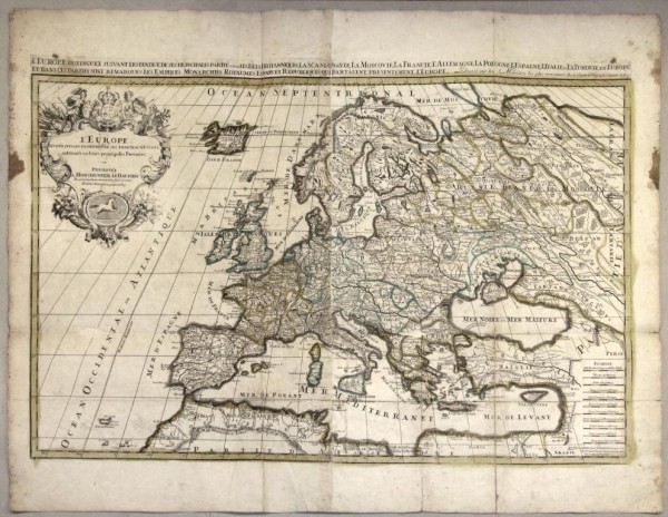-L'EUROPE, DIVISÉE SUIVANT L'ESTENDUE DE SES PRINCIPAUX ESTATS, SUBDIVISÉS EN LEURS PRINCIPALES PROVINCES. PRESENTÉE A MONSEIGNEUR LE DAUPHIN PER SON TRES HUMBLE, TRES OBEISSANT ET TRES FIDELE SERVITEUR HUBERT IAILLOT GEOGRAPHE DU ROY.