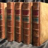 Legatura coeva in mezza pelle con angoli e carta beige; dorso a 6 scomparti con titolo e numero di tomo su tasseli rossi e verdi, eleganti fregi in oro; tagli spruzzati. Tomo I: occhiello, frontespizio con titolo in rosso e nero e vignetta, 4 pagine non numerate; LXXI pagine numerate con testatina incisa da Fessard; 327 pagine numerate, all'interno, 1 testatina e 1 tavola sinottica ripiegata; 30 tavole incise fuori testo e più volte ripiegate. Tomo II: frontespizio con titolo in rosso e nero, 2 pagine non numerate; 599 pagine numerate; 13 tavole incise fuori testo e più volte ripiegate. Tomo III:  frontespizio con titolo in rosso e nero; 788 pagine numerate; 19 tavole incise fuori testo e più volte ripiegate. Tomo  IV: XLIII pagine occhiello, frontespizio con titolo in rosso e nero; 647 pagine numerate; 35 tavole incise fuori testo e più volte ripiegate. Tomo V: occhiello con titolo in rosso e nero HISTOIRE NATURELLE DES INSECTES TRADUITE DU BIBLIA NATURAE DE JEAN SWAMMERDAM; frontespizio con titolo in rosso e nero, XL pagine numerate; 673 pagine numerate; 36 tavole incise fuori testo e più volte ripiegate. In totale i volumi contengono 133 tavole fuori testo. I tomi in esame rappresentano i primi cinque volumi di una poderosa opera enciclopedica che venne pubblicata lungo tutta  la metà del '700. esemplare in ottimo stato conservativo