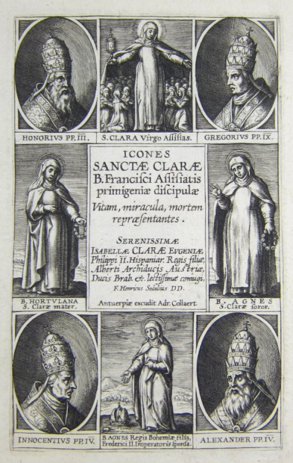 -ICONES SANCTAE CLARAE B. FRANCISCI ASSISIATIS PRIMIGENIAE DISCIPULAE VITAM, MIRACULA, MORTEM, REPRAESENTANTES.