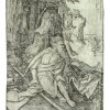 Incisione originale al bulino in unico stato e nella variante "c" su "c", impressa su carta vergata senza filigrana, databile alla fine del XVI secolo. In basso a destra monogramma "L" su una piccola edicola inchiodata su un ceppo d'albero. L'immagine raffigura San Cristoforo, martire della Chiesa non più annoverato tra i santi del calendario cattolico per l'incerta storicità. Come citato nella "Leggenda Aurea", Crisotoforo era un cananeo desideroso di mettersi al servizio dell'uono più potente del suo tempo, dopo un re che si ritrovò a tremare davanti all'apparizione del domonio, servì quest'utlimo, ma quando lo vide tremare davanti alla croce di Cristo lo abbandonò. Da allora seguì Cristo traghettando poveri e derelitti attraverso il fiume. Una notte traghettò Cristo stesso sotto le sembianze di un bambino, durante il tragitto il peso si fece via via maggiore e quando Cristo si rivelò gli disse che aveva trasportato il peso di tutto il mondo. E' forse la prima stampa eseguita da Luca da Leida, quando aveva solo 12 anni, nonostante qualche ingenuità traspare già chiaramente tutta la sua promettente abilità. Conosciuto anche come Lucas Hugensz o Jacobsz, era un incisore e pittore olandese, nato e attivo prevalentemente a Leiden. Fu tra i principali pittori e incisori del suo tempo. Dürer rimane il suo punto di riferimento principale, i due si incontrarono durante un soggiorno di Dürer nei Paesi Bassi e in molti affermano che scambiarono le proprie stampe l'un con l'altro in segno di amicizia e apprezzamento, ma Lucas da Leyden era meno colto e pensatore di Dürer, ed ebbe la tendenza a concentrarsi su caratteristiche aneddotiche dei soggetti e a trovare piacere nelle caricature degli stessi; tuttavia, Lucas ha lasciato un corpus di opere estremamente ricco, nonostante la morte prematura, ed è stato sicuramente un artista prodigioso. L'esemplare si presenta in buono stato di conservazione, con margine sottilissimo praticamnete sempre presente; inchiostratura piuttosto debole.
