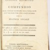 Legatura in mezza pelle , al dorso titolo e fregi impressi in oro, tagli decorati in rosso. 1 carta bianca , 1 - 159 pagine numerate compreso il frontespizio e l'indice , 1 carta bianca. Indice per argomenti, in ordine alfabetico, delle materie contenute nei volumi della prima parte e nei tre tomi della seconda , della Pratica Legale . Fu pubblicato separatamente dal resto dell'opera per "comodo del Pubblico" e curato dagli stessi autori. Esemplare in buone condizioni conservative.