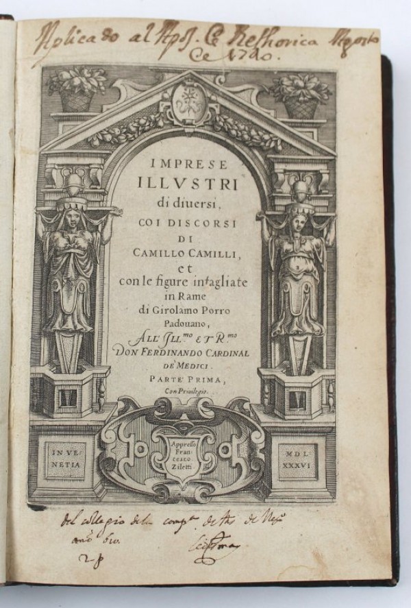 IMPRESE ILLUSTRI DI DIVERSI, COI DISCORSI DI CAMILLO CAMILLI, ET CON LE FIGURE INTAGLIATE IN RAME DI GIROLAMO PORRO PADOVANO.