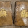 Legatura coeva in piena pelle avana con, ai piatti anteriori, ampio stemma gentilizio in oro alle armi del barone Joseph Bonnier de la Mosson, « D’azur, à sept burelles d’or, accompagnées en chef de trois gerbes liées du même mises en fasce »; supra libros ai piatti posteriori con la scritta del nome del barone entro festone in oro; dorsi rifatti con salvaguardia di buona parte degli originali con titolo in oro su tassello rosso; fregi e numero di tomo in oro agli scomparti; tagli rossi ; guardie marmorizzate; ai contropiatti anteriori di entrambi i volumi, ex-libris nobiliare di George Wilbraham (1779-1852). Ricchissimo ereditiero, Joseph Bonnier de la Mosson costituì una straordinaria collezione a carattere naturalistico allocata nel suo prestigioso Hôtel du Lude a Parigi. In vita dilapidò una fortuna, alla sua morte le preziose collezioni furono vendute all'asta realizzando cifre enormi per l'epoca. La celeberrima e imponente bilbioteca fu andata venduta all'asta nel 1745, un anno dopo la sua morte, Catalogue des livres de M. Bonnier de La Mosson, trésorier des Etats de Languedoc (Paris, Jacques Barrois, 1745, in-8, [2]-118 p., 1.624 lots). I volume: al verso della carta di guardia, note manoscritte; 18 pagine non numerate, compreso il frontespizio con titolo e una nota manoscritta "Meziere. 2 voll." 544 pagine numerate. II volume: 4 pagine non numerate, compreso il frontespizio; 526 pagine numerate; 40 pagine non numerate di indici, di cui l'utlima è bianca. All''interno dei volumi, 152 tavole incise fuoir testo, di cui 6 più volte ripiegate e delle 6, 2 con 4 soggetti per ognuna. raffigurano, vedutine di cittò, costumi e specie botaniche. Prima edizione, in contemporanea a quella di Lyone edita in 3 volumi In-8°. "The First Edition Is Rare.Tournefort was one of the greatest botanists of his time, discovering many new plant species during his travels in the Levant." [Blackmer]. Tournefort era professore di botanica presso il Jardin des Plantes di Parigi. Fu inviato in Levante (paesi nella parte orientale del Mar Mediterraneo) da Luigi XIV nel 1700 per condurre ricerche botaniche e zoologiche. È stato accompagnato dal medico von Gundelsheimer e dall'artista Claude Aubriet, a cui si devono i disegni delle incisioni che adornano l'opera. L'esplorazione dell'Egitto e della Siria fu impedita dall'insorgere della peste. Il testo, redatto sotto forma di lettere, contiene osservazioni su topografia, mappe, costumi, antichità, commercio, zoologia, botanica e mineralogia dei territori esplorati. L'opera ebbe uno straordinario successo, in particolare per la scoperta di 1256 nuove piante. Il Relation d'un voyage du Levant è apparso dopo la morte del suo autore e fu tradotto in inglese (1741) e in tedesco (1776). Esemplare complessivamente in buone condizioni, segnalati difetti ai dorsi della legatura, diffuse fioriture o ossidazioni.