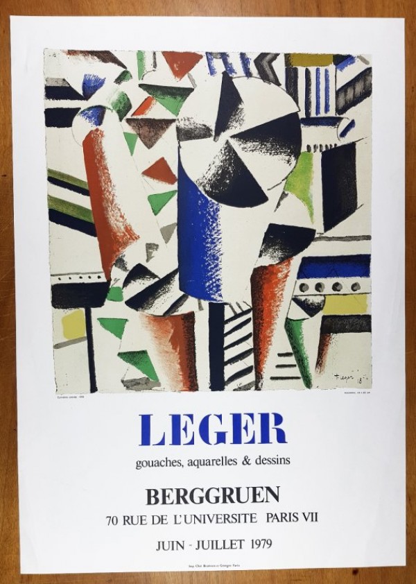 Manifesto originale in tecnica litografica prodotto per la mostra dedicata a Leger presso la galleria Berggruen di Parigi da giugno a luglio 1979.