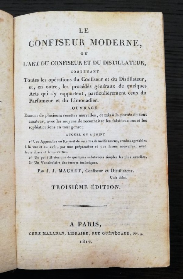 LE CONFISEUR MODERNE, OU L'ART DU CONFISEUR ET DU DISTILLATEUR, CONTENANT TOUTES LES OPÉRATIONS DU CONFISEUR ET DU DISTILLATEUR... TROISIÉME ÉDITION.