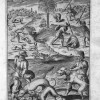 Incisione originale a bulino di rame. La trasposizione su lastra, eseguita con abile tratteggio spetta, secondo il repertorio di Piantanida-Diotallevi-Livraghi, all'incisore N. Pierry. Tavola tratta da un importante e raro trattato di E. Raimondi da Brescia sui vari metodi di caccia e pesca, l'accurata raffigurazione delle tecniche venatorie, ambientate entro dettagliati paesaggi; la descrizione spazia dali animali utilizzati dai cacciatori, quali cavalli, "uccelli di rapina" e cani, agli animali cacciati, sia mansueti che feroci. L' immagine raffigurata, di gusto tardo manierista, è di notevole interesse documentario. Esemplare in buone condizioni conservative.