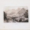 Stampa litografica originale eseguita alla matita, sotto la parte figurata, indicazione degli artisti, titolo e dati tipografici. L'opera di notevole interesse iconografico, è tratta da un volume illustrato di Cockburn dedicato alla Valle di Susa e destinato ai viaggiatori inglesi, grandi estimatori delle valli alpine. Veduta prospettica della città di Susa presa dalla nuova strada del Moncenisio, a destra in primo piano il ponte di San Rocco con la cappella, a sinistra la cerchia delle mura del Lungodora, in secondo piano da sinistra, la chiesa della Madonna del Ponte, i campanili di San Giusto e di Santa Maria Maggiore e il castello. La trasposizione in stampa, eseguita con abile tratteggio, spetta a C. J. Hullmandel, litografo tedesco attivo in Inghilterra. Il disegno dell'opera, eseguito dal vero, spetta a Cockburn, incisore e litografo inglese, maggiore generale d'artiglieria e cadetto alla Royal Military Academy di Woolwich; Cockburn ebbe come maestro di disegno topografico il pittore Saul Sandby, sotto la cui guida divenne un artista raffinato, affermandosi come illustratore e concedendo spazio, nelle sue immagini, a particolari di gusto pittoresco. Cockburn soggiornò spesso in Italia e perlopiù in Piemonte.Tavola tratta da rara opera di viaggi, rappresentativa dei più bei siti da Torino a Lione, passando per il Moncenisio. Esemplare in buono stato conservativo.