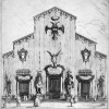 Incisione originale eseguita all'acquaforte su matrice di rame, nel secondo e definitivo stato, impressa su carta seicentesca. In lastra, sotto la parte figurata, titolo, data e firma incisa. Stefano Della Bella documenta nelle sue incisioni, spesso raccolte in suites, i vari generi figurativi del suo tempo, quali riproduzioni di apparati effimeri e di scenografie per gli spettacoli ed eventi di corte, costumi esotici, scene di genere di carattere pastorale o venatorio, paesaggi e vedute topografiche o di fantasia, episodi mitologici, rebus e altri giochi di società, vasi, fregi, cartigli, capricci con figure umane e animali. Nell'immagine in esame è rappresentata la facciata della chiesa di San Lorenzo, coperta di drappi, e decorata con figure colossali, sul portale centrale vi è la Fama in atto di suonare la tromba, in primo piano alcuni personaggi, in abiti seicenteschi, animano la piazza antistante e l'entrata della chiesa . Esemplare in buono stato conservativo, margini molto sottili.