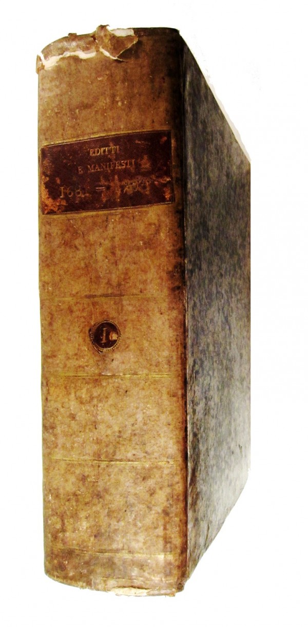 Legature originali; la prima, in mezza pergamena e carta maculata blu con titolo su tassello rosso e numero di tomo su tassellino sempre rosso, incisi in oro; la seconda, in carta maculata blu con titolo e numero di tomo su tasselli rossi; tagli spruzzati. I volume: XVI pagine numerate per il frontespizio, dedicatoria e indici, 918 pagine numerate, le ultime per indispensabile indice cronologico delle leggi emanate; 1 carta con dati editoriali al recto e bianca al verso. II volume: XVI pagine numerate per il frontespizio ed indici; 742 pagine numerate, le ultime per indice delle materie; 1 carta con indice degli errori. Primi due volumi sui 31 pubblicati (l'ultimo uscì nel 1869) di una fondamentale raccolta di leggi diretta nel 1818 da Nasi e successivamente da Giovanni Nuytz giureconsulto torinese, dal 1826 fu compilata dall'avvocato Felice Amato Duboin. Esemplare in buone condizioni, uniformi lievi arrossature ad alcune carte.