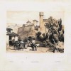 Stampa litografica originale impressa in seppia e nero; titolo, dati tipografici extra-margine inferiore. L'opera è ispirata ad un disegno di J. Harding, celebre pittore ed incisore inglese, allievo di Samuel Prout, ed eseguita da C. Hallmondal. Bella veduta prospettica della città piemontese di Ivrea, centro principale del canavese collocata sulla sinistra della Dora Baltea. L'insieme pittoresco delle torri del castello sabaudo, dei bastioni medioevali e la cattedrale, accoglie il viaggiatore, proveniente dalla valle d' Aosta, alle soglie della Porta Aosta ancora munita delle strutture difensive. In primo piano ferve il traffico dei viandanti e dei mercanti intorno alla fonte. Tavola tratta da importante raccolta di stampe a carattere vedutistico.Esemplare in buone condizioni conservative