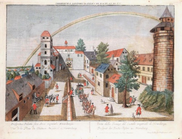 PROSPECTUS PALATII SIVE ARCIS IMPERIALIS NORIMBERGÆ [...] - VISTA DELLA PIAZZA DEL CASTELLO IMPERIALE DI NORIMBERGA [...]