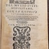 Elegante legatura coeva rimontata, di epoca leggermente anteriore all'edizione, di fattura "anversoise" in piena pelle con ricche impressioni a secco ai piatti un poco consunte, sono effigiati due ritratti; tagli spruzzati; al contropiatto, ex-libris Bibliotech Rosales Bernate e altro ex-libris della celebre biblioteca di Roberto Almagià. (15)- da 8 a 223-(1)-1b. carte numerate. Marca tipografica ai due frontespizi e al recto dell'ultima carta; alcuni capolettera silografati. Rara prma edizione completa delle due parti: il Duello e Le Risposte Cavalleresche, queste ultime spesso mancanti. "Tra gli scrittori di scienza cavalleresca che sono più frequentemente a mano d'ognuno viene innanzi ogni altro il Muzio il cui nome è cotanto sacro in questa materia" (Maffei, p.253). Muzio fu un celebre letterato italiano, il cui vero cognome era Nuzio, oriundo di Capodistria, Justinopolis, per questo chiamato Iustinopolitano; personaggio particolare e bizzarro, girovagò per Austria, Germania e Italia, al servizio di svariati Signori per approdare in fine alla corte di Papa Pio V. Autore di Egloghe (1550) e di poesie petrarchesche per Tullia d’Aragona, compose anche fortunati trattati di materia cavalleresca, di cui il più celebre è proprio Il duello (1550) e Il gentiluomo (1571),chiuse la sua carriera come polemista cattolico. Sostenitore di un’idea di lingua colta e contrario al fiorentinismo di B. Varchi, aderì alla tesi, enunciata da G.G. Trissino, di una lingua che risultasse dalla sintesi di varie parlate regionali. Lo sfondo storico è quello della Firenze del Principato e della Riforma tridentina della Chiesa romana. Esemplare in buone condizioni dalla legatura particolarmente attraente; qualche gora interna alle prime carte, segni di usura alla legatura con crepe alle cerniere.