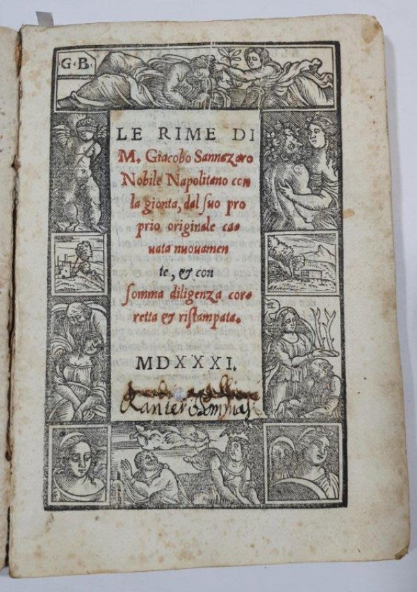 LE RIME DI M. GIACOBO SANNAZARO NOBILE NAPOLITANO CON LA GIONTA, DEL SUO PROPRIO ORIGINALE CAVATA NUOVAMENTE, ET CON SOMMA DILIGENZA CORRETTA ET RISTAMPATA.