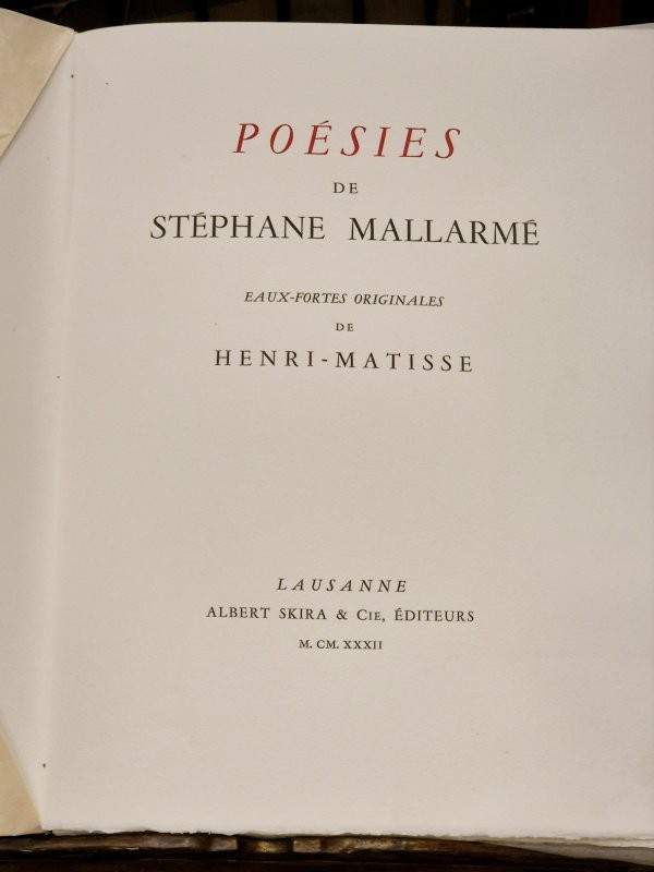 POÉSIES DE STÉPHANE MALLARMÉ. EAUX-FORTES ORIGINALES DE HENRI-MATISSE. (Con un disegno originale di H. Matisse)