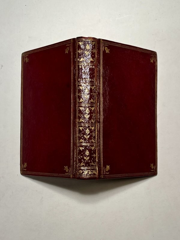 Legatura trado seicentesca in marocchino rosso, triplice cornice a filetti in oro con angolari floreali in oro ai piatti, dorso con titolo in oro e fregi floreali in oro agli scomparti; tagli dorati; sguardie marmorizzate; ex libris al contropiatto anteriore "Charles Butler" e al contropiatto posteriore con stemma "Wilmot Viscount Liburne". (8)-206-(1)-(1cb) carte numerate (errore di numerazione p. 156). Frontespizio con marca tipografica silografata; capilettera abitati e testatine silografate. Si tratta di un'antologia curata da Francesco Sansovino che raccoglie testi di diversi autori. La raccolta riscontrò un notevole successo confermando la rinascita della satira luciliana in versi e l'adozione del modello classico, proposto da Orazio e Giovenale in lingua volgare, e venne ristampata più volte fino al 1580. Jean Vauquelin de La Fresnaye, l'inventore del genere in lingua francese, fece ampio uso dei Sette libri di satire di Sansovino nelle sue Satyres Françoises (Caen, 1604-1605); Lo stesso Enrico III possedeva una copia dell'edizione stampata da Vidali nel 1573. Esemplare in discreto stato conservativo, le 7 carte dopo il frontespizio provengono, all'epoca delle legatura, da altra edizione e sono leggermente più corte al margine inferioreo; all'interno numerose pagine con lievi tracce di scolorimento o trasparenza a seguito di un probabile lavaggio sempre all'epoca della legatura.