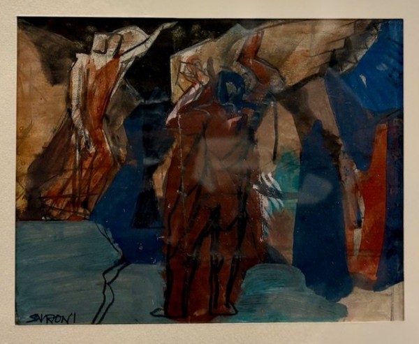 Dipinto su carta eseguito ad acquarello, tempera, biacca  e grafite. Firmato in basso a sinistra. Esemplare in buone condizioni, traccia di piegatura verticale al centro del foglio.