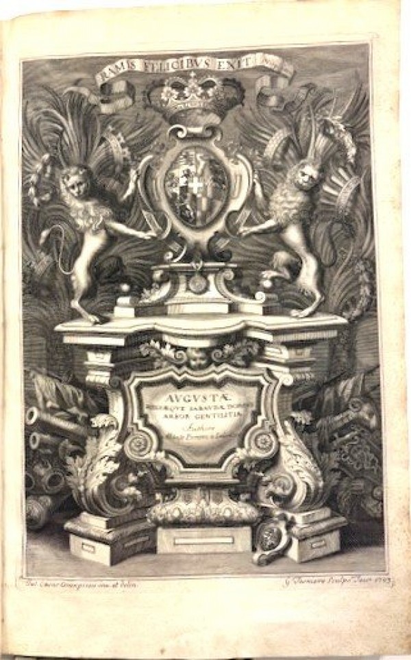 AUGUSTÆ REGIÆQUE SABAUDÆ DOMUS ARBOR GENTILITIA REGIÆ CELSITUDINI VICTORI AMEDEO II SABAUDIÆ DUCI, PEDEMONTIJ PRINCIPI, CYPRI REGI & C. AB AUTHORE FRANCISCO MARIA FERRERRO A LABRIANO D.D.D.