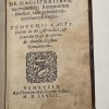 Legatura seicentesca in piena pelle marrone, dorso a 4 nervi con titolo su tassello e fregi floreali in oro parzialmente deperiti; sguardie ai contropiatti spugnati con mancanza del foglio libero, tagli rossi. 190 [i.e. 192 con ripetizione delle pagine 127 e 128] pagine numerate. Frontespizio con marca tipografica silografata raffigurante un cavallo alato, capilettera, testatine e finalini silografati. Le due opere già presenti nel titolo al frontespizio sono scritte in latino ed entrambe trattano degli ordinamenti religiosi e giudiziari dell'antica Roma. Il primo trattato è attribuito allo storico latino Lucio Fenestella (sin dalla prima edizione pubblicata nel 1477), ma in realtà l'autore è Andrea Domenico Fiocchi, storico e umanista, mentre l'autore del secondo testo è Giulio Pomponio Leto, umanista latino. Esemplare in discrete condizioni conservative, dorso con evidenti segni d'usura e decori deperiti, mancanza dei fogli di sguardia, evidente gora d'acqua all'angolo inferiore esterno lungo tutto il testo.