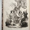 Legatura in mezzo marocchino rosso e carta policroma marmorizzata con bordura a filetto longitudinale dorati; dorso con tiitolo e ampio fregio in oro, sguardie marmorizzate. Occhietto, antiporta inciso a piena pagina raffigurante scena con 4 figure rappresentanti ognuna un continente con una scritta sottostante "Amerique ,Oceanie, Asie, Afrique; frontespizio con una vignetta silografata raffigurante una vela. (2)- 657-(3) pagine numerate. Testo in francese suddiviso in due colonne e 15 tavole incise fuori testo (compreso il frontespizio) lungo tutto il volume. Il volume fa un riassunto della scoperta, della conquista e dell'origine degli antichi popoli dell'America settentrionale e meridonale; della loro morale, dei loro costumi, delle loro pratiche e delle loro religioni. Inoltre, descrive le arti, le scienze, il commercio, le manifatture e i vari governi nel loro stato attuale; produzioni naturali, curiosità ecc. Alcuni brani sono tratti o tradotti dai più celebri racconti di viaggiatori francesi e stranieri, e organizzati nel testo dalla Società di geografi e letterati. Esemplare in buone condizioni,salvo lievi arrossature.
