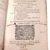 Legatura originale in piena pergamena ; al dorso, titolo manoscritto su tassello di carta. 16 pagine numerate, compreso frontespizio con titolo e marca tipografica, annotazioni a penna; 406 pagine numerate; 2 carte bianche fittamente manoscritte da antiche mani diverse. Testo in lingua volgare e carattere prevalentemente corsivo; capilettera decorati a racemi impressi a silografia. L'opera è un trattato composto da una serie di dialoghi (sul modello del Libro del Cortegiano di B. Castiglione); la prima edizione del testo, articolato in sole 5 giornate, venne impressa a Venezia, per i tipi di Francesco Ziletti, nel 1585. Il volume ebbe un notevole successo, come attestano le sue reimpressioni e le traduzioni in francese e inglese. Particolarmente raffinata è l'ambientazione, perché gli interlocutori sono dame e cavalieri della corte di Alfonso d'Este duca di Ferrara. Ciascuna delle sette giornate dei Discorsi è dedicata a un particolare aspetto della vita e dalla cultura aristocratiche: la bellezza, l'amore umano, l'onore, l' "iniquità del Duello", la nobiltà, le ricchezze e infine la "precedenza dell'Arme, e delle Lettere". Esemplare in buono stato conservativo, numerosi segni a margine eseguiti a penna, piccolo foro di tarlo più evidente alla carta bianca di guardia, al frontespizio e, meno, alla carta successiva.