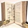 Legatura coeva in piena pelle marrone, dorso con ricche decorazioni in oro agli scomparti e titolo in oro su tassello tinto in epoca successiva di nero; sguardie marmorizzate; tagli spruzzati di rosso. XXX - 940 - (2) - 16 - (Supplèment de l'Almanach) - 12 (Ouvrages nouveaux) pagine numerate. Occhietto, antiporta inciso figurato, frontespizio contenente una breve sintesi dei contenuti dell'almanacco; testatina figurata all'inizio del primo capitolo. 3 tavole incise fuori testo. Almanacco curato da tre dei più importanti botanici e agronomi del XVIII -XIX sec. per istruire i giardinieri riguardo la coltivazione delle piante da giardino e dei fiori, in particolare le rose. L'almanacco ebbe una pubblicazione annuale a partire dal 1755. All'interno le tavole illustrative incise sui metodi di coltivazione (p.336 e p. 337) e sulle parti di una pianta da fiore (p.831). Una tavola in ordine alfabetico e un supplemento dedicato all'anno di pubblicazione 1820 completano l'opera. Esemplare in ottime condizioni, leggera gora d'acqua all'angolo superiore esterno dell'antiporta, piccoli fori di tarlo da pag 854 a pag. 16 del supplemento, interessano alcune letterine di testo.