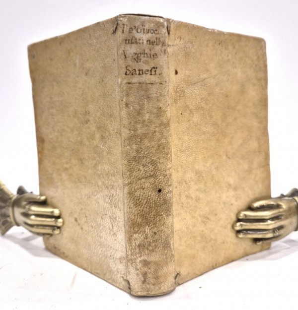 Legatura coeva in piena pergamena, dorso liscio con il primo titolo manoscritto. Ex-libris al contropiatto anteriore dell'Ex Bibliotheca Nicolai Joseph Foucault Comitis Consistoriani. I tomo: 288 pagine numerate. Frontespizio con marca tipografica con cornice ovale silografata e scritta "Tuissima virtus pietas homini", firma manoscritta per antica mano; grandi capilettera e piccoli fregi silografati, all'inizio dei capitoli. Prima edizione del 1572 di quest'opera che ebbe un rilevante successo e venne ristampata più volte. Il dialogo è l'ultimo documento degli interessi giovanili del Bragagli, ed egli infatti lo compose in segno di riconoscenza per l'Accademia degli Intronati nell'allontanarsi, come egli stesso dice nel proemio dell'opera, "da, suoi piacevoli studi". Nella dedica a Isabella de' Medici Orsini, duchessa di Bracciano, l'autore esprime il suo rammarico per la decadenza di certe belle usanze accademiche. II tomo: 22 carte numerate. Frontespizio con marca silografata; grandi testatine, finalini e capilettera silografati a racemi e abitati. Opera di Beolco Angelo detto il Ruzante dal verbo ruzzare che significa scherzare, contenente due Dialoghi dell'autore, spesso anche attore nelle sue commedie. Esemplare in discrete condizioni, ossidazione all'angolo interno della parte inferiore delle prime 25 carte; lieve gora d'acqua su angolo e bordo esterno di buona parte del volume e in particolare verso il termine del libro; nitida l'inchiuostratura.