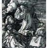 Silografia impressa su carta vergellata, tracce parziali di filigrana con corona (Meder 259?) testo latino al verso per l’edizione del 1511. Monogramma su tavoletta all’angolo inferiore sinistro. Secondo stato su quattro, prima variante su due, (Meder 135 II/V - a/b). Rifilata al bordolinea, sempre presente anche se in parte sottilissimo. Esemplare in ottimo stato di conservazione, dall’inchiostratura molto forte e nitida; due minuscole grinze da stampa in alto nella parte centrale visibili al recto; al verso, lievi tracce di collatura e abrasione all’angolo superiore destro. Accompagnata da cartoncino con timbro ‘collezioni T.G. Ritter - Milano’. STRAUSS 142 - rispetto alla versione scartata di questo soggetto, questa silografia è stata elogiata per la resa realistica dell’atteggiamento orante di Cristo e dei discepoli addormentati: sembrano realmente addormentati, non semplicemente con gli occhi chiusi. Wölffin la definì la più perfetta della serie. Come nell’Annunciazione e nella Natività, le figure occupano l’intera superficie pittorica, escludendo elementi architettonici o un ampio paesaggio. Solo sullo sfondo in lontananza i soldati romani stanno entrando dal cancello del giardino. Woodcut on laid paper, with traces of watermark with crown (Meder 259?), latin text on “verso” for edition of 1511. Monogram to the left lower edge. Meder 135 II/V - a/b. Trimmed on borderline always present even if partially very thin. Excellent condition, strong very tonal impression; two very little printing wrinkles at the upper centre “on recto”; light traces of former mounting and abrasion on upper right corner, “on verso”. Accompanied by cardboard with ‘T. G. collection stamp Ritter -Milan’. STRAUSS 142 - compared to the discarded version of this subject, this woodcut has been praised for the realistic rendering of the prayerful attitude of Christ and the sleeping disciples-they appear to be actually asleep, not merely with their eyes closed. Wölfflin called it the most perfect of the series. As in the Annunciation and the Nativity, the figures take up the entire picture area to the exclusion of architectural elements or a large landscape. Only in the distant background the Roman soldiers are entering the garden gate.