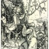 Silografia impressa su carta vergellata con filigrana ‘Triangolo con fiore’ (Meder 127); testo latino al verso per l’edizione del 1511; timbro della collezione ‘Richard Gute Kunst’ (Lugt 2213 a). Monogramma su tavoletta all’angolo inferiore destro. Secondo stato su tre (Meder 190 II/III). Piccolissimo margine oltre il bordolinea, sempre presente, con perdita della numerazione di pagina A iii che era posta al margine dell’angolo inferiore destro. Esem - plare in ottimo stato di conservazione dalla vivida inchiostratura; leggerissima trasparenza di poche righe del testo; al verso, bella goffratura e lievissime abrasioni agli angoli superiori; sporadiche, leggere macchie di foxing. STRAUSS 95 - Le dimensioni delle figure sono insolitamente grandi. È l’unica xilografia della serie Vita della Vergine, oltre a Fuga in Egitto priva di elementi architettonici. Proprio come la trave verticale che separa Cristo dalla Vergine in Congedo di Cristo dalla Madre , qui un albero sottile separa Gioacchino dall’apparizione. Restituendo la vegetazione in to - nalità cupe, Dürer ha accentuato il contrasto tra le figure luminose. Woodcut on laid paper, with watermark ‘Flower with triangle’ (Meder 127), with Latin text “on verso”, for the edition of 1511; collection stamp ‘Richard Gute Kunst’ (Lugt 2213 a). Monogram on the right lower edge. Meder 190 II/III. Very narrow margin beyond the borderline, always present with loss of page numbering A iii which was placed at the edge of the lower right corner. Excellent condition, vivid inky, strong contrasts; slightly transparency of few text lines. On verso: beautiful gauffrage and very tiny abrasions on the upper corners; sporadic, light pinpoint foxmarks. STRAUSS 95 - The scale of the figures is unusually large. It is the only woodcut in The Life of the Virgin series, besides The Flight to Egypt, which lacks architectural elements. Much like the vertical beam separating Christ from the Virgin in Christ Taking Leave of His Mother here a thin tree divides Joachim from the apparition. By rendering the vege - tation in sombre shades, Dürer has heightened the contrast of the bright figures.