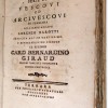 Legatura originale in cartonnage con punti di corda alle cerniere; al dorso, doppio titolo manoscritto da mani diverse e etichetta con numero di collocazione. Frontespizio, 8 pagine non numerate con, alla prima, stemma cardinalizio inciso in testa alla pagina; 159 pagine numerate; 2 pagine non numerate per Errata. Descrizione cronologica dei vescovi e arcivescovi della città di Ferrara fino alla data di pubblicazione. Esemplare genuino in legatura immacolata; all'interno, diverse pagine, soprattutto verso la fine dell'opera, con ossidazioni dell'inchiostro di stampa, piuttosto acido. A fogli ancora chiusi, in barbe.