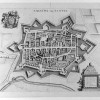 Incisione originale su matrice di rame, eseguita all'acquaforte da anonimo artefice dei Paesi Bassi su disegno tracciato nel 1668 da Simone Formento. Sotto la linea d'inquadramento superiore, doppio titolo e a sinistra stemma araldico sostenuto da putti; all'angolo inferiore destro legenda con 8 richiami, entro cippo, nonchè numero 52. La tavola è tratta dalla penultima edizione di una monumentale descrizione dei possedimenti sabaudi, siti al di qua e al di là delle Alpi: l'opera fu impressa la prima volta ad Amsterdam, presso gli eredi di I. Blaeu, nel 1682, sotto il titolo di Theatrum Statuum Regiæ Celsitudinis Sabaudiæ Ducis [...]. L'immagine è una veduta prospettica della località piemontese di Santhià, nome derivato dalla protettrice del luogo, sant'Agata; l'abitato appare munito di robuste mura e bastioni, nonché cinto da un fossato. Esemplare in ottimo stato conservativo, fresco e a pieni margini.