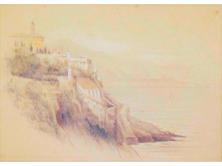 Disegno originale eseguito a matita su cartoncino, titolo manoscritto al verso del foglio. La tavola in esame è parte di un Album da viaggio, raffigurante diverse vedute della Riviera Ligure di Ponente e della Costa Azzurra, spaziando da San Remo a Monaco. Opera eseguita quasi certamente...