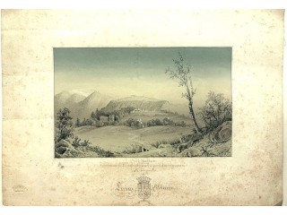 Dipinto originale finemente eseguito a pennello, acquerello e tempera su carta, racchiuso entro bordura delineata a penna e inchiostro bruno; entro la parte figurata, al centro, firma "Carrozzi f(ece)" e datata 1814; sotto la parte figurata, titolo calligrafato a penna e inchiostro bruno....