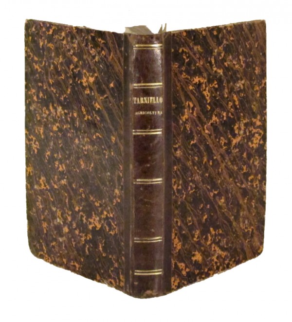 Legatura di metà Ottocento in mezza pelle e carta decorata; autore, titolo e filetti in oro al dorso. Occhiello, bell'antiporta figurata incisa all'acquaforte e di argomento agricolo astrologico, frontespizio con titolo e fregio tipografico, 8 pagine numerate alla terza pagina per la dedicatoria, grande stemma araldico inciso, 296 pagine numerate, 2 tavole fuori testo e più volte ripiegate, la prima rappresenta una tabella, la seconda, raffigura una curiosa tavola sull'età media della luna, sui novilunii e plenilunii, sulle quadrature medie dall'anno 1760 al 1801; al verso, nota manoscritta di possesso: Libro di me Venturini, 1801. 6 giugno. La prima edizione risale al 1567. Nel XVIII secolo, oltre alla presente ne venne pubblicata una bella edizione a Bergamo nel 1756. L'autore sperimentò un rivoluzionario metodo di coltivazione, per il quale ottenne il brevetto dalla Repubblica Veneta nel 1567. Il Saltini (I, p. 364) cita: "... un'idea concettualmente semplice e storicamente rivoluzionaria: quella di dimezzare le superfici a grano per sostituirne una parte con prati di trifoglio, dedicando alla residua superficie a frumento la maggior copia di lavoro resa disponibile e la massa di letame ottenuta dal più elevato carico di bestiame consentito dalla nuova messe di foraggi. Il maggior numero e la maggior cura delle lavorazioni insieme alle più abbondanti concimazioni consentirà l'aumento della produzione di frumento. ". L'opera ebbe una quindicina di edizioni nei secoli, quasi tutte nel Settecento, circa quella in esame il Re (IV, p. 96) la sottolinea come la migliore per utilità, grazie alle aggiunte dello Scattoni. Esemplare in buone condizioni, qualche lieve sporadica fioritura.