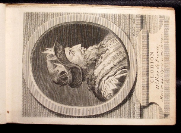 Legatura moderna in pieno cartonnage marmorizzato. 90 tavole incise all'acquaforte su matrice di rame da vari artefici, ciascuna della misura di mm 150 x 110 ca. più margini. L'album comprende una ricca e interessante raccolta di ritratti impressi su carta settecentesca, raffiguranti effigi a mezzo busto, entro cornice illusionistica ovale, di sovrani, in maggior parte re di Francia. Le tavole con i re transalpini da Pharamond al tardo Medioevo sono tratte da Recueil des Portraits des Rois de France, depuis Pharamond jusqu'à Louis XV, dess. d'après les médailles p. A. Boizot et gr. p. les soins de Mich. Odieuvre, Paris 1738: la serie completa sarebbe composta, secondo Graesse, da 65 ritratti di re, un ritratto di Maria principessa di Polonia, più 3 tavole nonché antiporta e frontespizio inciso; gli esemplari in esame di tale silloge (uno dei quali reca due personaggi di profilo) sono impressi nel secondo stato, senza indicazione dello stampatore. Altre tavole dell'album, simili dal punto di vista stilistico, rappresentano immagini di imperatori del Sacro Romano Impero, di papi, di re d'Italia, di Filiberto II duca di Savoia, più un'effigie di Anna di Bretagna regina di Francia. Varie tavole su disegno di Boizot sono state incise da Jean George Will o Wille (Obermühle 1715 - Parigi 1808); altre tavole spettano ad incisori settecenteschi quali Basan, Aubert, D. Sornique, F. Aveline e R. Gaillard. Esemplare in buono stato conservativo; minima mancanza marginale a tre tavole.