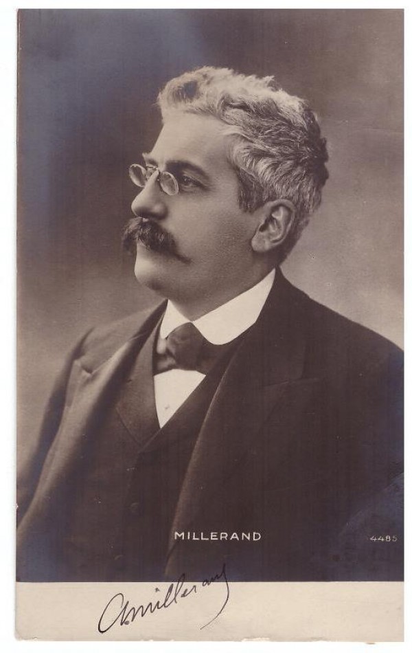 Cartolina postale con firma autografa a penna. Alexandre Millerand è stato un politico francese. Fu stato Primo Ministro dal 20 gennaio al 24 settembre 1920 e Presidente della Repubblica di Francia dal 23 settembre 1920 all'11 giugno 1924. La cartolina è indirizzta al Rag. Dino Fanciullacci di Torino. Esemplare in ottime condizioni conservative