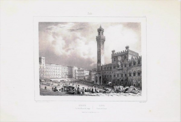 - SIENA, Piazza del CampoDEROY Auguste-Victor (morto a Parigi nel 1906) disegnò e litografò