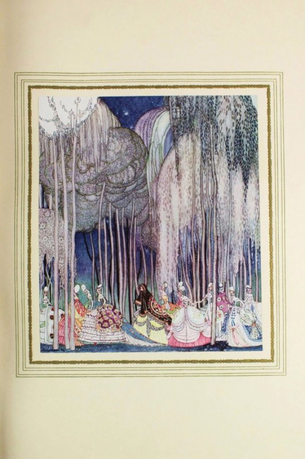 Importante legatura in marocchino blu firmata "G. de Mentque". 8 strisce dorate ed argentate applicate in senso orizzontale al centro dei piatti fino a congiungersi agli 8 nervi posti in sequenza ravvicinata al centro del dorso, titolo ed autore impressi in oro ed argento. Tagli dorati. Sovraccoperta in mezzo marocchino blu con autore e titolo impressi in oro al dorso; custodia in cartone foderato di carta marmorizzata. All'interno brossura originale ben conservata con titolo in rosso entro bordura dorata. 102 pagine numerate, 19 tavole illustrate a piena pagina di Kay Nielsen e suite completa di altrettante tavole al fondo del volume. 12 vignette in bianco e nero e 6 capolettere nel testo. Prima Edizione, tiratura limitata a 1500 esemplari di cui 150 provvisti della suite extra al fondo del volume come la presente copia numerata N°20. Kay Rasmus Nielsen fu un noto illustratore danese attivo durante la prima metà del XX secolo, nel pieno dell'epoca d'oro dell'illustrazione. Si unì al gruppo artistico di Arthur Rackham ed Edmund Dulac. Nielsen è noto anche per le sue collaborazioni con la Disney la quale gli commissionò numerosi schizzi ed illustrazioni per le sue storie. Esemplare in eccellenti condizioni conservative.