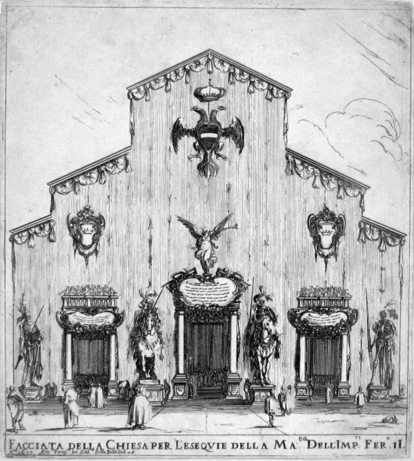• Titolo: FACCIATA DELLA CHIESA PER L'ESEQUIE DELLA MA(EST)?? DELL'IMP(ERATO)RE FER(DINAND)O. II.