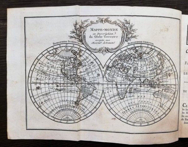 Legatura coeva in piena pergamena rigida; dorso liscio recante tassello azzurro con curatore, titolo e numero di tomo, il tutto impresso in oro; tagli spruzzati di rosso. (VI) - 412; (4) - 450; (2) - 392; (2) - 408; (2) - 376; (2) - 367 - (1); (2) - 346; (2) - 391; (29) - 447 pagine numerate, compresi l'occhietto del primo tomo, bell'antiporta con scena figurata all'acquaforte e frontespizio in apertura di ciascun volume. Pp. 33-48 del I volume collocate erroneamente tra pp. 16 e 17. Mancanza del X e ultimo tomo. Testo in lingua francese; bei fregi tipografici a silografia. All'inizio del I volume, una bella tavola fuori testo incisa su rame e impressa su foglio ripiegato bianco al verso, raffigurante i due emisferi del mappamondo. Al foglio di guardia superiore dei volumi, nota di possesso vergata a penna con grafia antica. L'opera è un'interessante raccolta, comprendente relazioni di viaggi attorno al mondo compiute da navigatori europei. L'impressione in esame è forse identificabile in quella menzionata da Brunet, che tuttavia cita come luogo e anno di stampa solo "Paris 1788" e segnala la presenza di un decimo volume, assente nell'esemplare in esame. Nei testi sono narrate le avventure di Magellano, sir Francis Drake e vari altri viaggiatori, spesso citati in forma francesizzante e approssimativa: T. Cavendish, Olivier de Noort, George Spilberg. Jacques le Maire, Jacques l'Hermite, Capitaine Clipperton, Gemelli Carreri, Capitaine Shelvock, Dampier, Cowley, Woode Rogers, M. le Gentil, Commodore Anson, Capitaine Wallis, Roggewin, Commodore Byron, Capitaine Carteret, Pagès, Bougainville, Surville. I tomi VII-IX sono interamente dedicati ai viaggi del capitano Cook. Accurati e di un certo interesse iconografico sono gli antiporta, raffiguranti episodi dei viaggi narrati. Esemplare in ottimo stato conservativo, minimo distacco del dorso del primo volume, considerata la segnalata mancanza di un tomo; interno fresco salvo alcune carte brunite o con gore d'umidità.