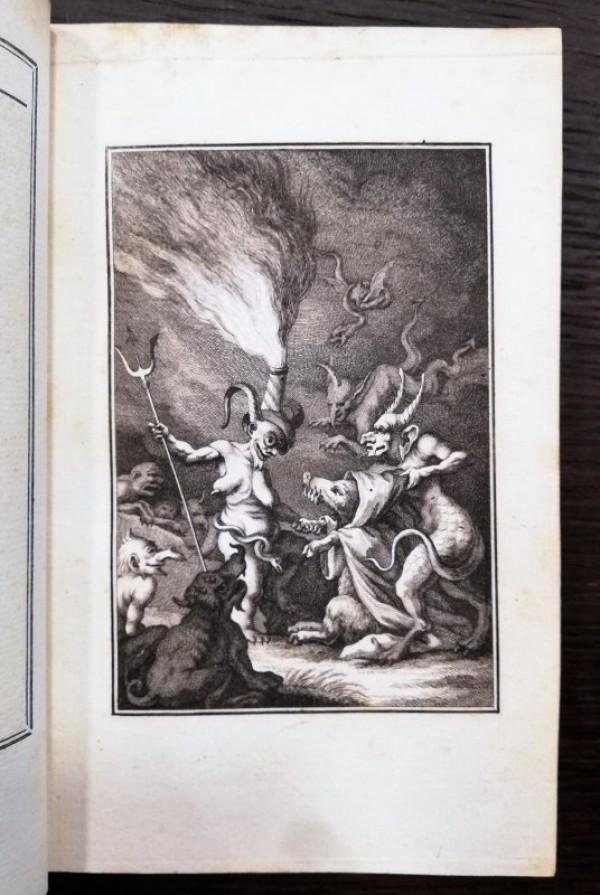 Legatura coeva in piena pelle maculata, piccola cornicetta impressa in oro ai piatti, dorso a sei nervi con tassello e titolo in oro e fregi in oro, sguardie marmorizzate. Occhietto, antiporta incisa e figurata; 10 carte numerate compreso il frontespizio e impresse al solo verso; 8 illustrazioni a piena pagina fuori testo; 8 pagine numerate di spartiti musicali. Seguono occhietto, antiporta figurata, 10 carte numerate, incluso il frontespizio e impresse al solo verso; 8 illustrazioni a piena pagina fuori testo; 1 carta di colophon non numerata con verso bianco. Seguono 12 pagine numerate di spartiti musicali. In totale 2 frontespizi e 16 figure di Borel incise da Elluin, molte delle quali molto libere. L'opera, interamente incisa e alquanto insolita, è una raccolta di canzoni licenziose. Prima rara edizione a cui ne seguì una seconda l'anno successivo. Segni di usura alla legatura, con fenditure ai piatti richiuse, spellature agli angoli; interno fresco con consueti lievi segni di ossidazione alle carte.