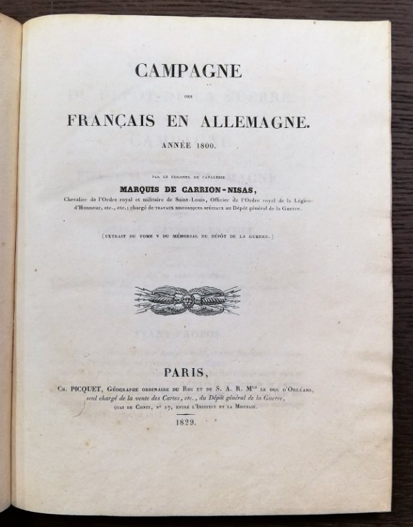 -CAMPAGNE DES FRANÇAIS EN ALLEMAGNE. ANNÉE 1800. PAR LE COLONEL DE CAVALERIE MARQUIS DE CARRION-NISAS. (EXTRAIT DU TOME V DU MÉMORIAL DU DÉPÒT DE LA GUERRE).