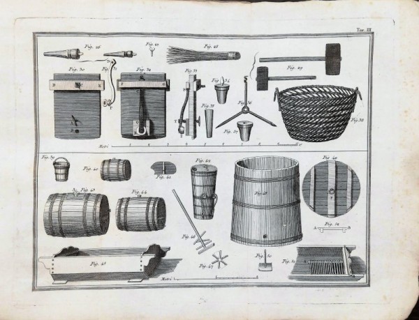 Legatura originale in brossura color cartazucchero. (18)-178-(2) pagine numerate, compresi occhiello e frontespizio con antica firma di appartenenza "Prer Fornary Teobaldo di S. Vittoria"; seguono 5 tavole incise fuori testo e più volte ripiegate di strumenti usati in viticoltura. Prima rara edizione di un celebre manuale in cui il veneziano Dandolo istruisce su come meglio coltivare la vite e produrre un buon vino; in particolare tratta sulla scelta delle viti, raccolta, fermentazione e travasi, alterazioni; in fine i vantaggi della migliore fabbricazione dei vini nel regno d'Italia. L'autore fu egli stesso produttore di vini. Nel 1819 seguì una seconda edizione. Esemplare in buono stato conservativo, piccole mancanze al dorso e agli angoli dei piatti, "in barbe".