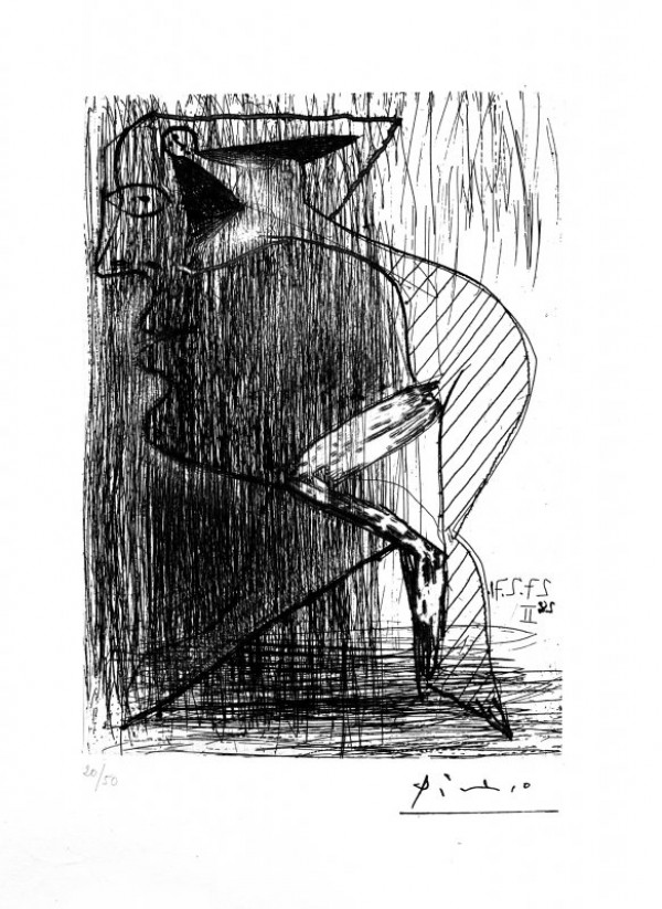 Incisione originale eseguita all'acquaforte, puntasecca e raschiatoio impressa su carta; all'angolo inferiore sinistro giustificazione della tiratura: 20 su 50; all'angolo inferiore destro, firma autografa a matita. All'interno della parte figurata, in basso a destra, data 27.2.71-II.2.71, ma in controparte. Il bel soggetto raffigura il volto di una donna stilizzato di profilo. Esemplare in eccellenti condizioni dalla bassa tiratura solo a 50 esemplari.