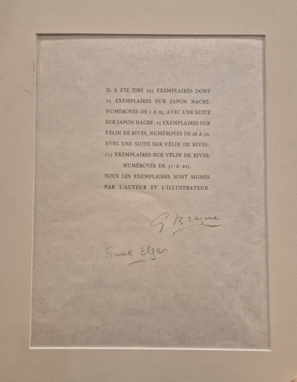 Litografia originale impressa su Japan Nacré all'ultima pagina di quello che era il frontespizio dell'opera, in prima pagina abbiamo il titolo "RÉSURECTION DE L'OISEAU PAR FRANK ELGAR" in seconda pagina abbiamo la giustificazione della tiratura, tirata a 225 esemplari, con sottostante la firma a matita sia di Braque sia di Elgar, la terza pagina è bianca. L'esemplare in esame fa parte della serie "Suite sur Japan Nacrè senza numerazione". L'edizione Résurrection de l'oiseau contiene quattro litografie a colori e tre decorazioni litografiche (due vignette di apertura e una di chiusura) con immagini di uccelli. Anche il bordo superiore del cofanetto reca una decorazione litografica: un arabesco con motivi di uccelli. La litografia sulla copertina è strettamente correlata al dipinto "Les oiseaux" del 1960.