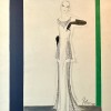 Original watercolor on cardboard representing fashion model, author's signature and date in pencil at the bottom right. The work is up to help John, an American mother Italian dress designer, active mainly in the fashion scene in Turin in the first half of the twentieth century. Its tables are made with mixed media, pencil, watercolor and tempera, characterized by an extremely elegant and sinuous lines that makes it a very 'vintage costume and fashion. Exemplary conservative in good condition.
