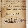 Legatura  in brossura editoirale con titolo e immagine al piatto anteriore e a quello posteriore  impressi in seppia. Al recto della prima carta, dedica autografa manoscritta di d'Annunzio: " Lina, una risonanza nella voce hai, che mi consola e mi contrista come d'ottobre quando con le man... si cammina cammina lungo il mare" Maggio 1911 Gabriele d'Annunzio. 166 pagine numerate; 6 pagine non numerate di cui 5 bianche. Prima edizione, sedicesimo migliaio della celebre tragedia pastorale suddivisa  in tre atti e in versi, venne rappresentata la prima volta al Teatro Lirico di Milano nel 1904, con Lyda Borelli nella parte di Ornella e Irma Gramatica nella parte di Mila di Codro, la figlia di Iorio.  La tragedia  trova ambientazione nelle campagne abruzzesi durante il  Medioevo e narra la storia di un pastore,  Aligi, e del suo amore  controverso con una donna, Mila, accusata di malaffare e stregoneria. Aligi uccide il padre a seguito del tentativo di quest'ultimo di stuprare Mila in segno di spregio per la donna invisa a tutti. Mila sava il malcapitato Aligi dalla forca, autoaccusandosi di averlo indotto al parricidio mediante un sortilegio. Mila viene così  condannata al rogo, compresa solo dalla sorella di Aligi che ha intuito la verità e la benedice. Esemplare in discrete condizioni, legatura con sciupature e piccole mancanze o crepe al dorso, interno lievemente allentato e ingiallito. Preziosa la dedica autografa di d'Annunzio.