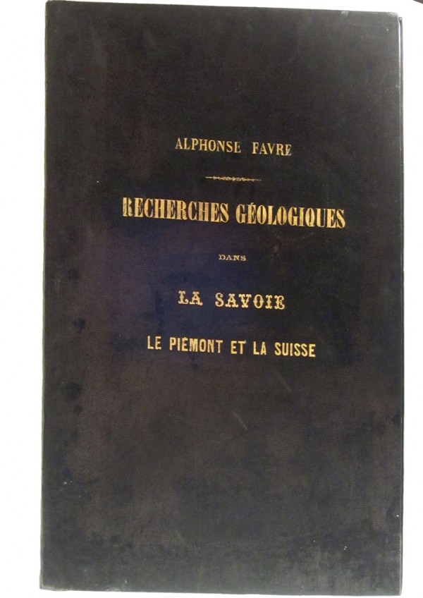 Legatura editoriale in tutta tela color bruno; autore e titolo impressi in oro al piatto anteriore. Occhiello, frontespizio; 3 carte di testo bianche al verso a fronte di altrettante 3 tavole litografiche fuori testo raffiguranti fossili e segnate con le lettere A, B, e C; seguono 28 su XXIX tavole litografiche fuori testo, mancanza della numero XVIII sostituita con una fotocopia. La prima e la penultima rappresentano carte geo-topografiche della Valla d'Aosta e della Savoia. Le altre rappresentano schemi di natura geologica o gradevoli paesaggi, anche 4 per tavola. Nonostante il Perret citi una tavola iniziale segnata con la lettera D tutti gli esemplari censiti riportano solo le prime 3 segnate A, B, e C come per l'esemplare in esame. L'autore fu un celebre geologo ginevrino che studiò per 30 anni il territorio valdostano e savoiardo limitrofo, fu inoltre attivo alpinista fondatore della sezione ginevrina del Club Alpino Svizzero; si interessò, inoltre, alla conservazione dei massi erratici. Grazie a una scalata diede anche il nome ad una cima : il Mont Favre. I suoi studi geologici vennero pubblicati nell'opera in esame, molto apprezzata per il rigore scientifico e per l'apporto di nuove conoscenze sulla materia geologica delle valli studiate e sulle loro catene montuose. L'atlante qui presente venne accompagnato da 3 volumi di testo di formato In-8° purtroppo mancanti. Il significativo apparato iconografico, prevalentemente di carattere scientifico, è impreziosito da alcune piacevoli e raffinate vedute paesaggistiche. Esemplare in eccellenti condizioni, segnalata mancanza di una tavola.