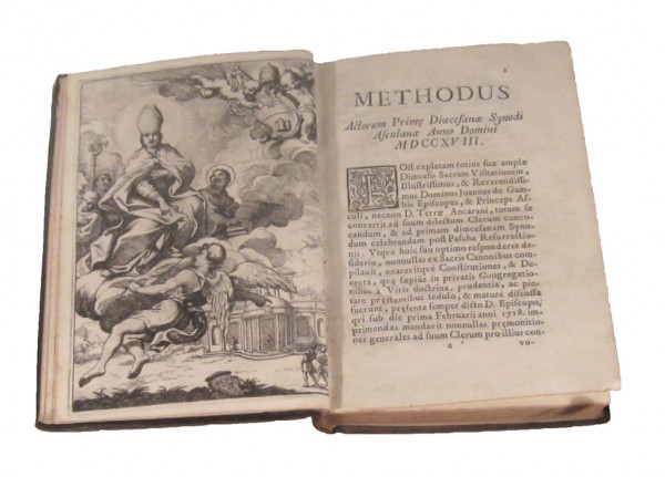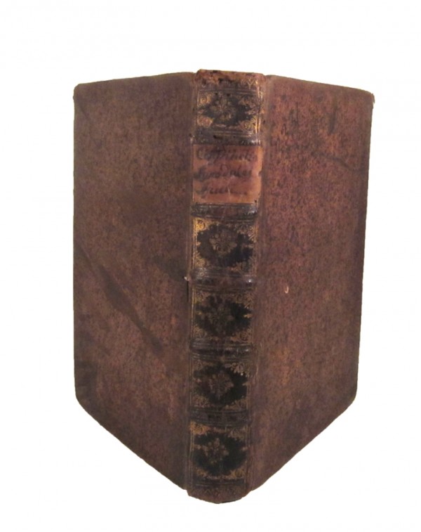 Legatura originale in piena pelle maculata; titolo manoscritto su tassello di carta e fregi in oro al dorso; tagli spruzzati. Occhiello, con timbro Biblioteca Classense di Ravenna; frontespizio con titolo e 2 timbri entrambi della Classense (l' esemplare è stato segnalato alla Biblioteca Classense e da questa ritenuto libero da vincoli in quanto risultante alienato nel passato) 4 pagine non numerate; raffinata antiporta incisa all'acquaforte a piena pagina; 42 pagine numerate; 12 pagine non numerate; occhiello; 155 pagine numerate, bianco il verso dell'ultima; 4 pagine non numerate, compreso occhiello per Appendix; 142 pagine numerate; 54 pagine non numerate. Buon esemplare, fresco e marginoso.