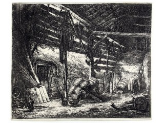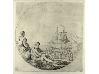 Incisione originale eseguita all'acquaforte su matrice di rame, nel secondo e definitivo stato su due, impressa su carta seicentesca. In lastra, sotto la parte figurata, legenda in latino. La tavola è la terza di una suite di sei acqueforti, considerate un capolavoro del periodo maturo di...